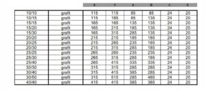 Dokładne wymiary każdego dostępnego rozmiaru: